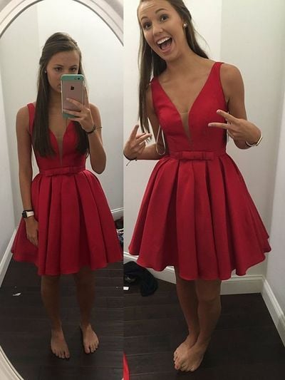 Charming A-line red homecoming dress ,short prom dresses