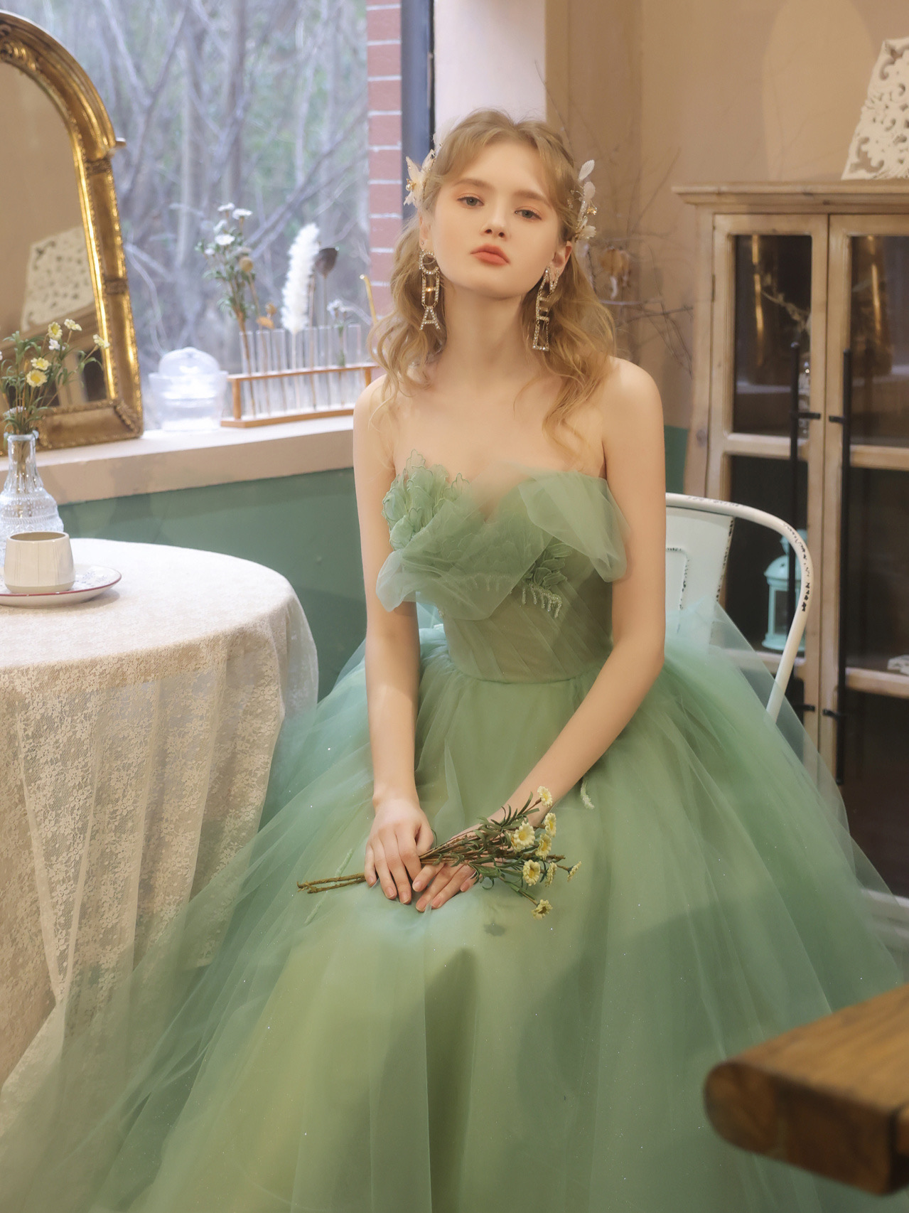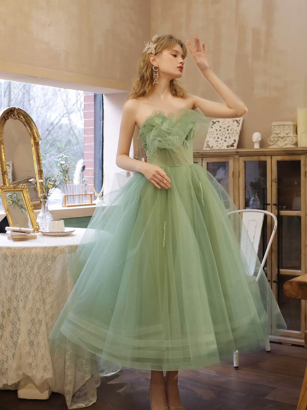 Green Tulle Lace Short Prom Dresses, A-Line Party Dresses