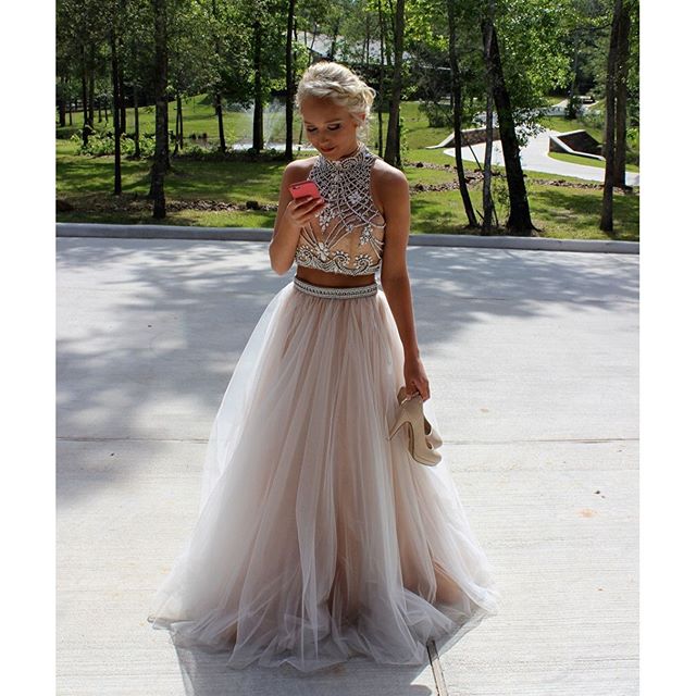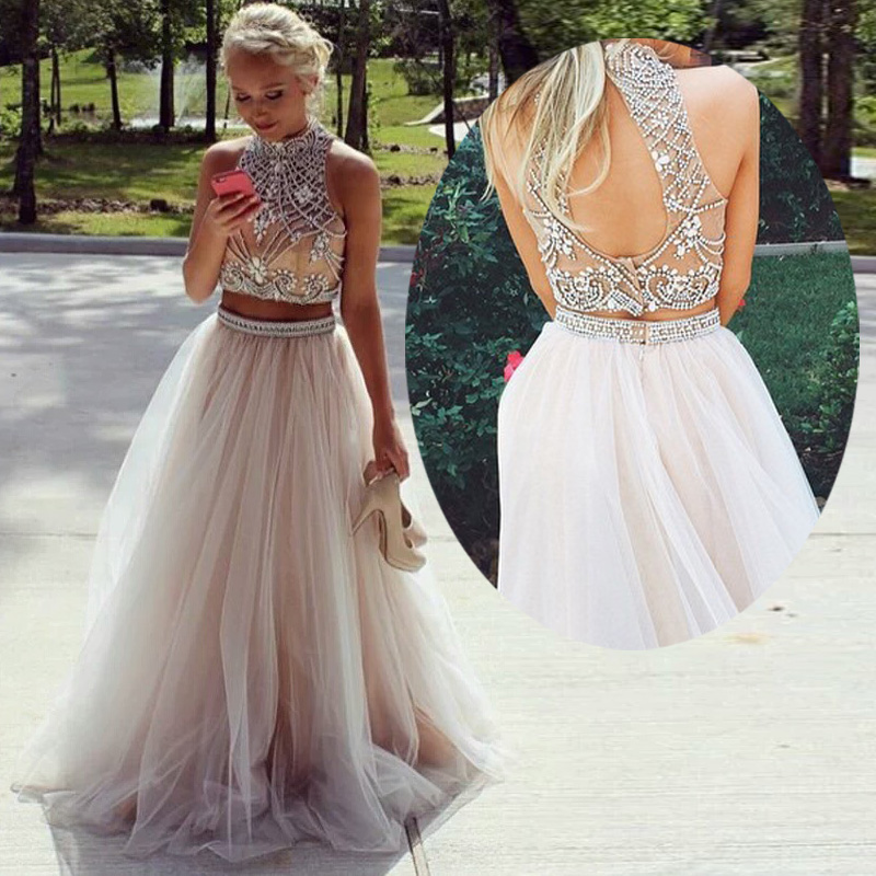 Custom made 2 pieces long prom dress,evening dress with open back