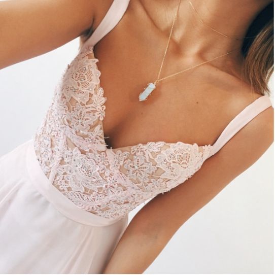 Elegant A-line chiffon lace prom dress,pink evening dress