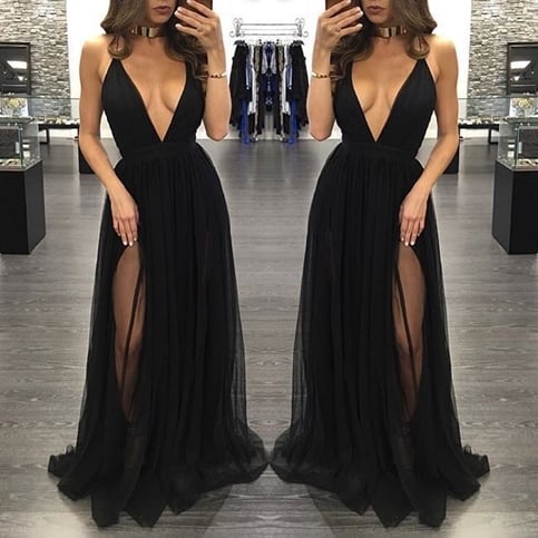 Sexy cross spaghetti tulle prom dresses,V-neck long evening dresses