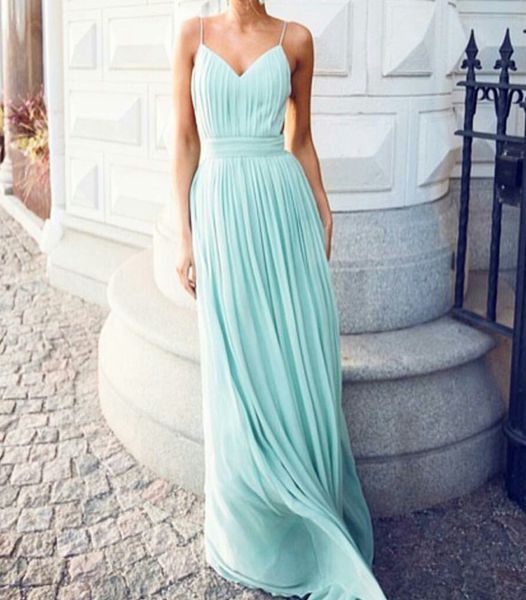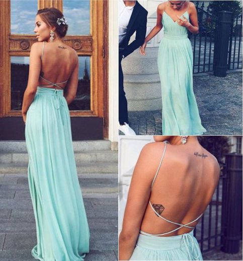 Simple A-line V-neck backless long prom dress,cheap dresses