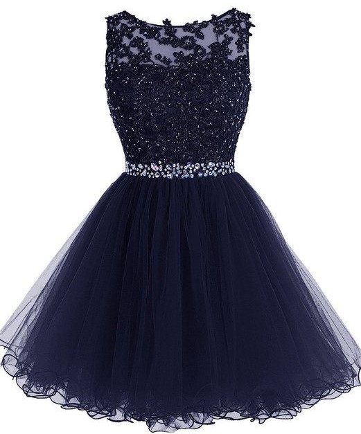 Charming dark blue lace short prom dress,homecoming dresses,graduation dress