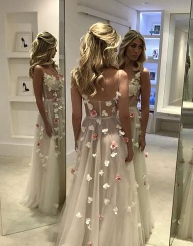 custom made tulle white long prom dress, white evening dress