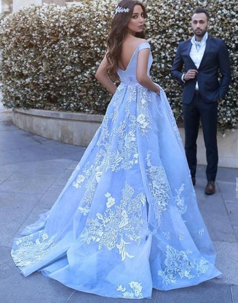 Custom made handmade tulle off shoulder prom dress with lace applique,formal dress