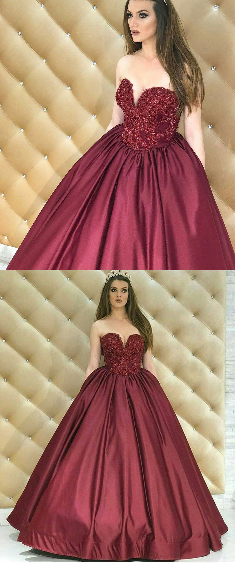 Burgundy strapless v neck long prom dress, burgundy evening dress