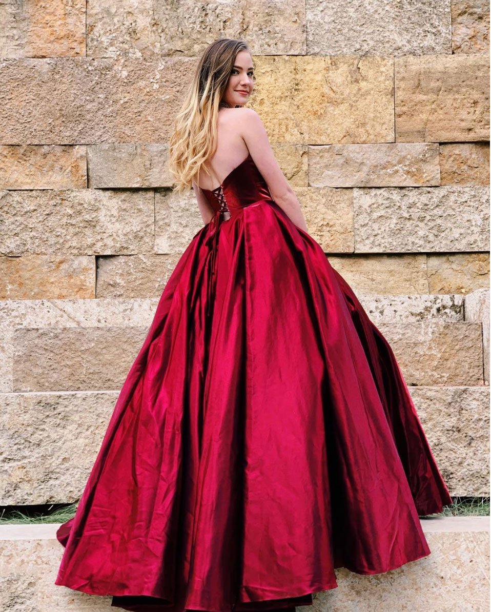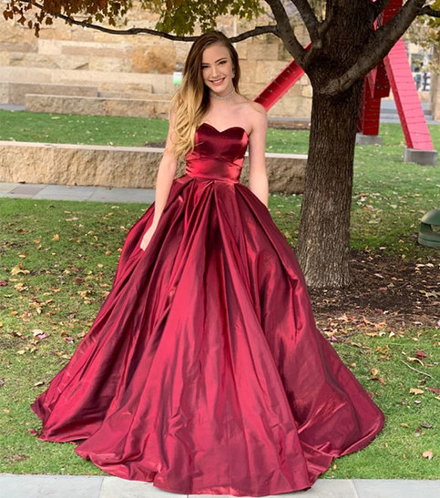 Simple burgundy satin long prom dress, evening dress