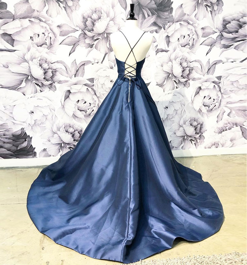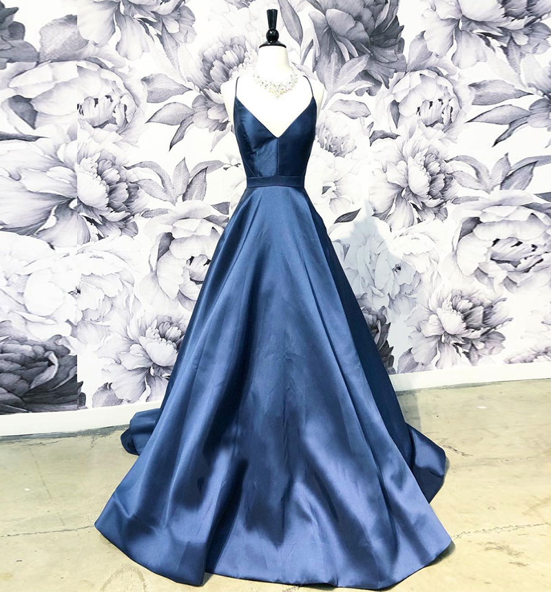 Blue satin long prom dress blue evening dress