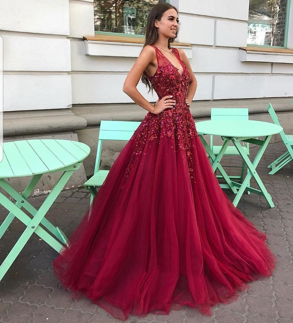 Gorgeous v neck burgundy prom gown