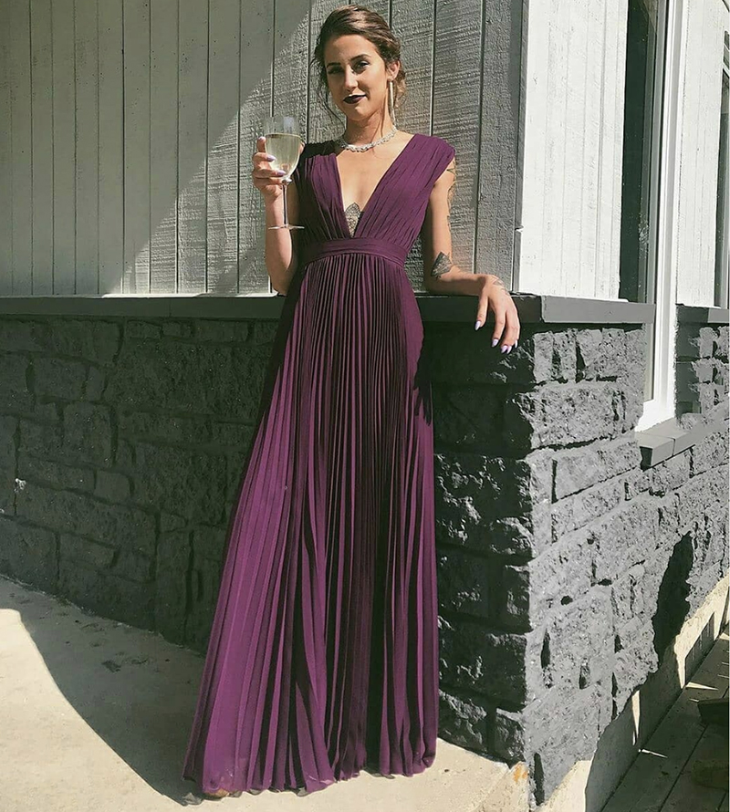 Purple chiffon long prom dress evening dress