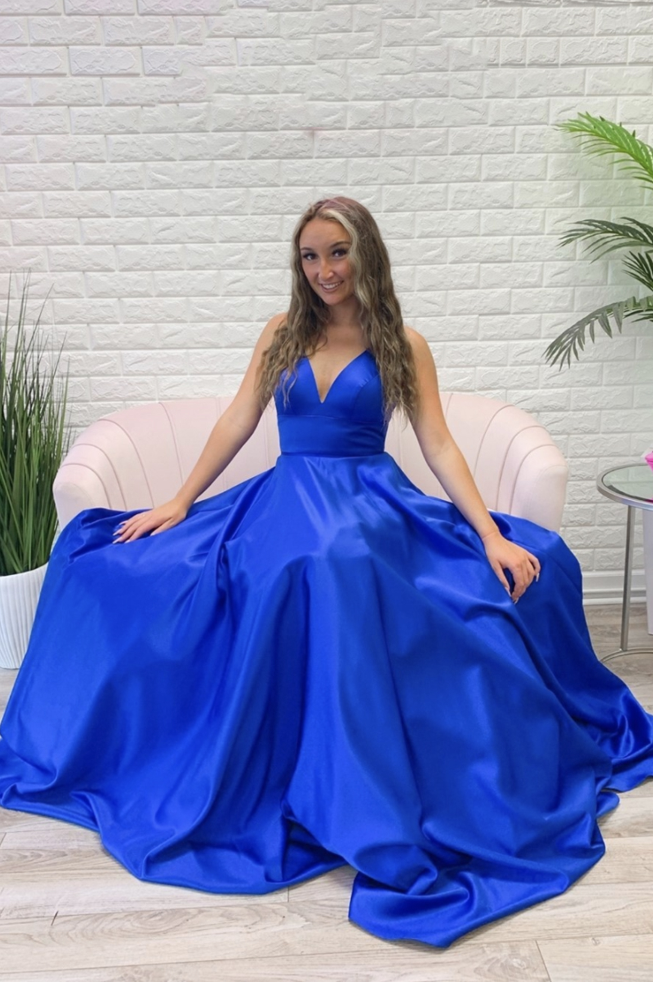 Blue satin long A line prom dress blue evening dress