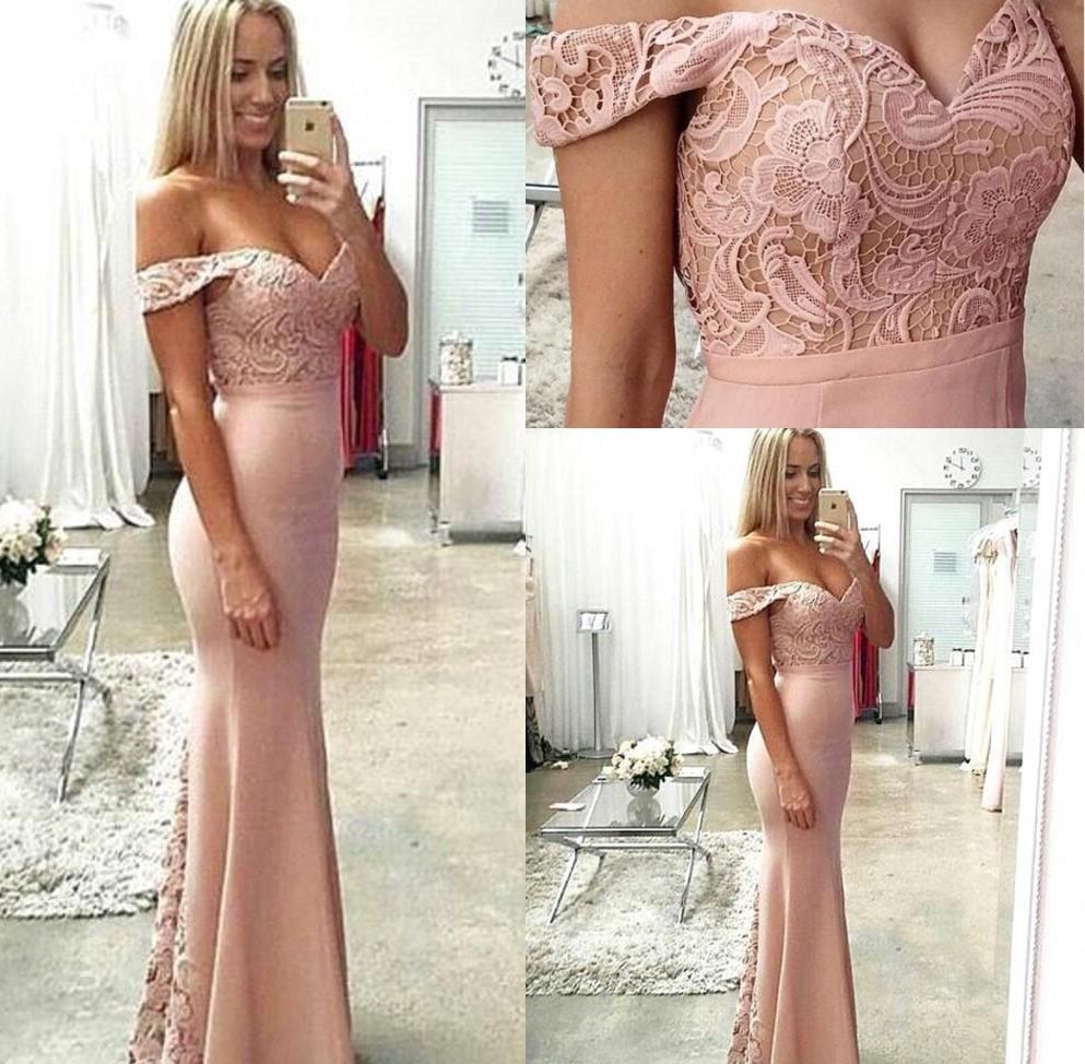 Pretty off shoulder dusty Pink long prom dress,evening dresses