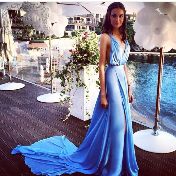 Simple blue long prom dress,blue evening dress