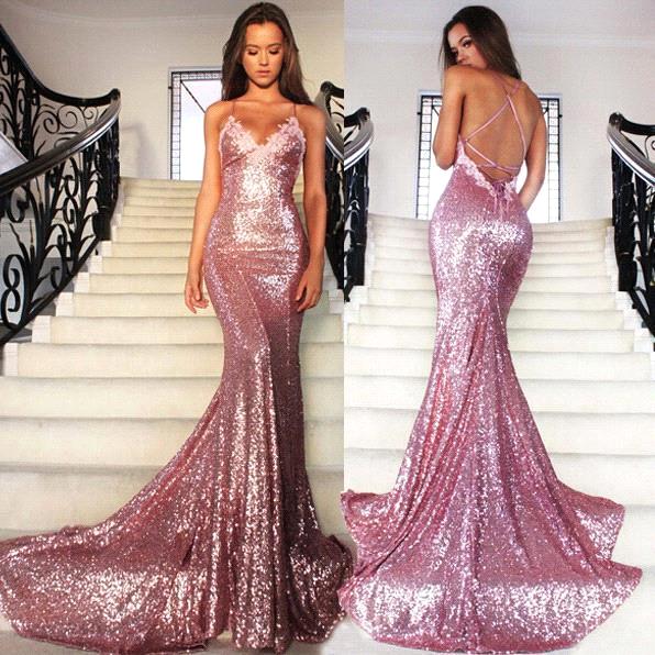 Mermaid shiny pink sequins long prom dress,pink evening gown