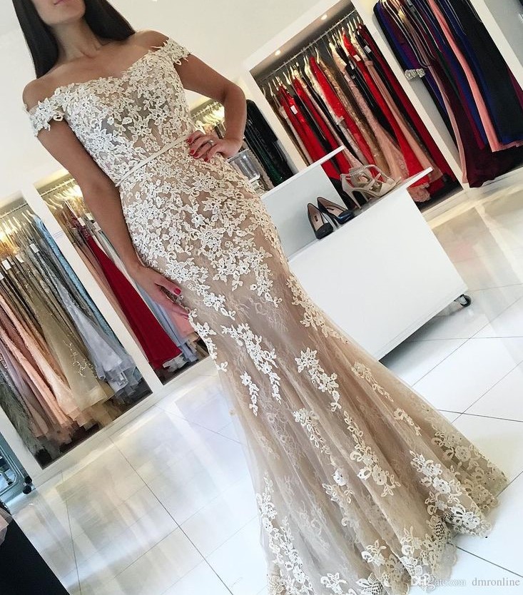 Champagne mermaid lace long prom dress,champagne evening dresses
