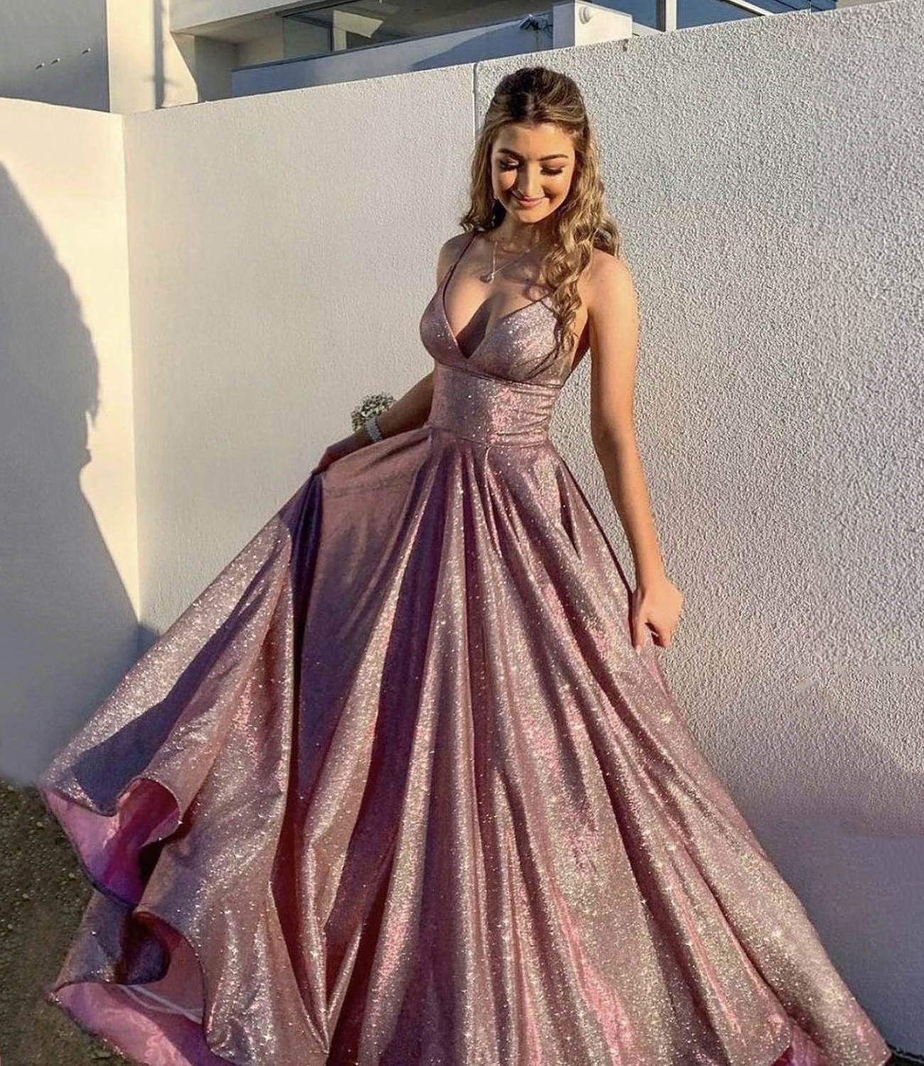 Simple v neck long prom dress A line evening gown