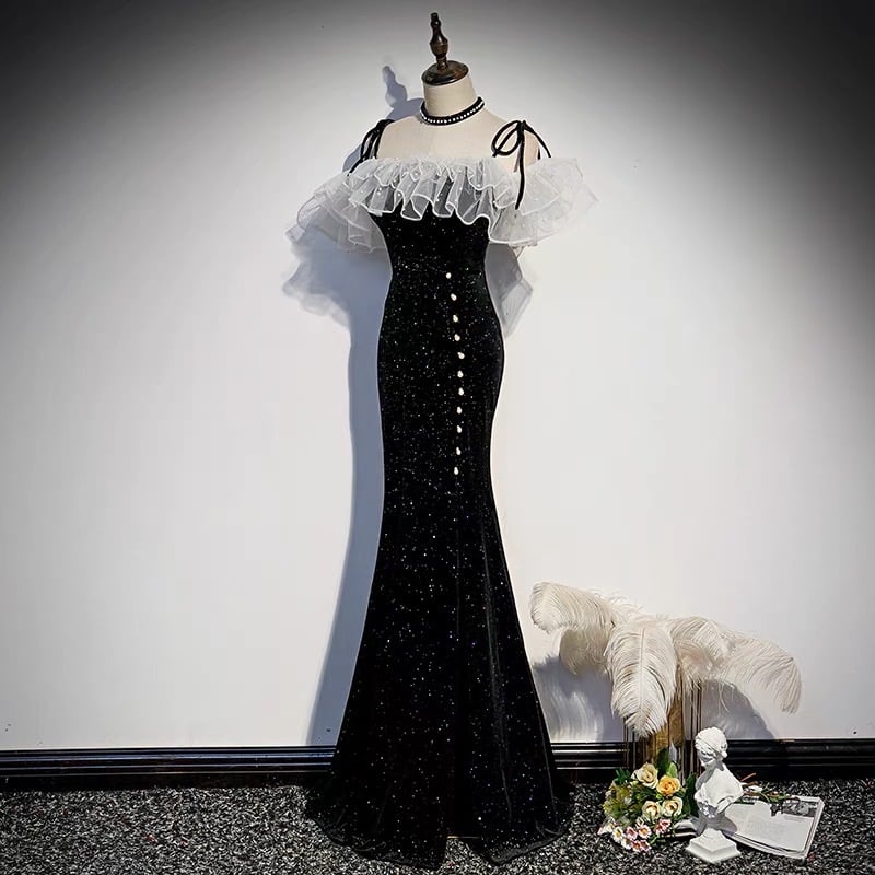 Black Vevet Long Prom Dress, Cute Evening Party Dress